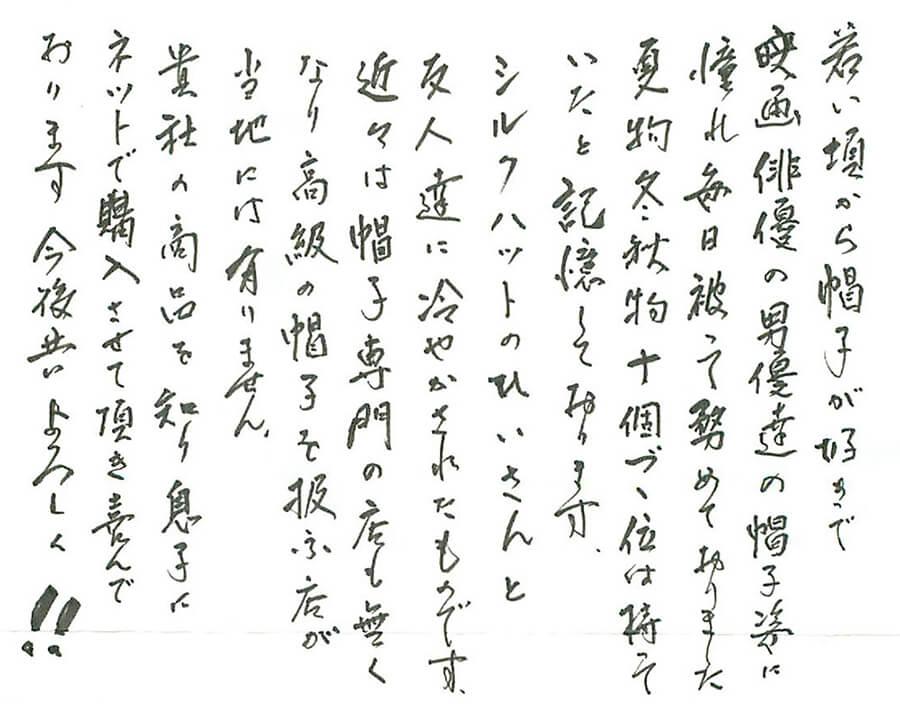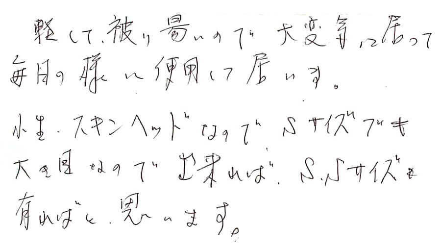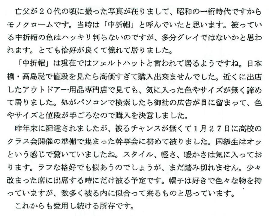 帽子をご購入されたお客様の声