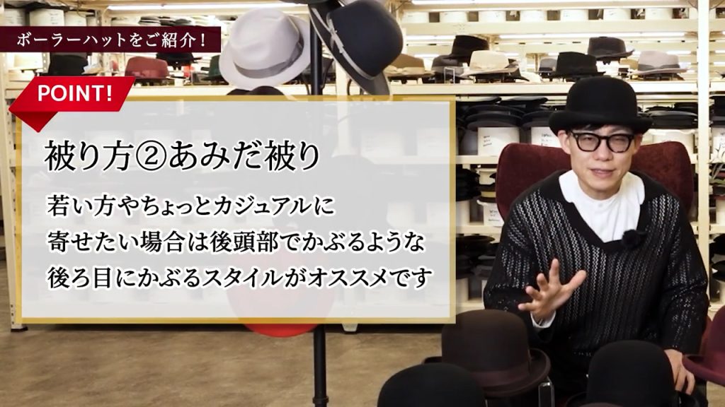 また、動画ではおすすめのボーラーハットも紹介しています。