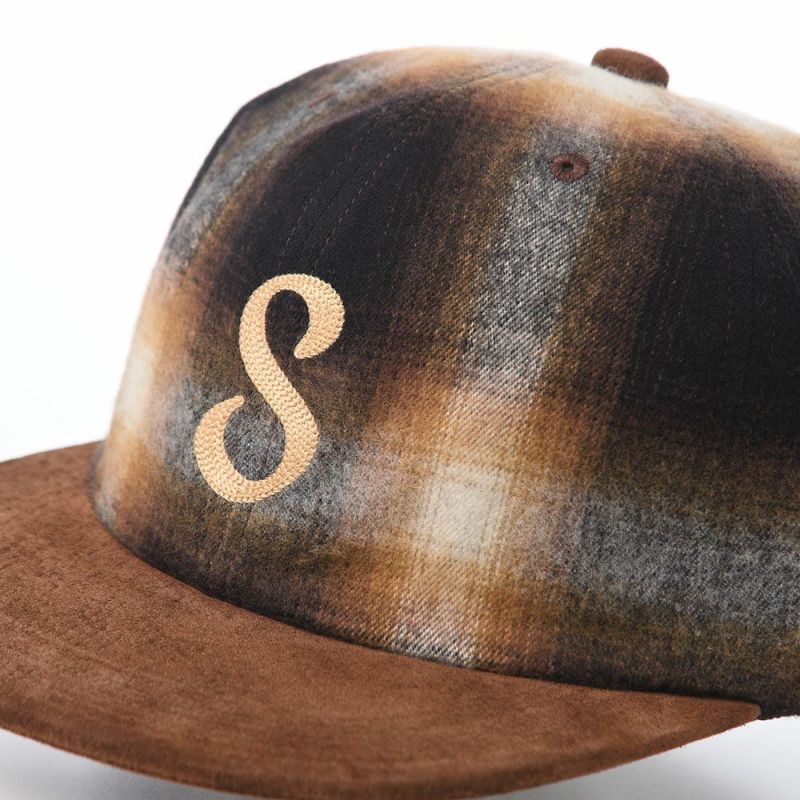 1950年代・60年代のモデルをモチーフに、オンブレチェック地と豚革スエードでデザインしたキャップ。フロントの「S」ロゴは、ビンテージ感のあるチェーン刺繍で表現。