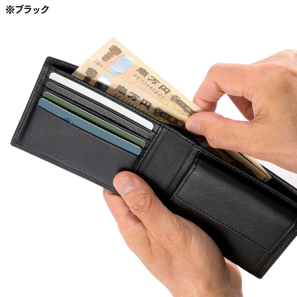 ミラグロ 二つ折り財布 牛革キップレザー ダブルステッチ 二つ折り財布 SL-CD-3046 ブラック|帽子通販 時谷堂百貨【公式】