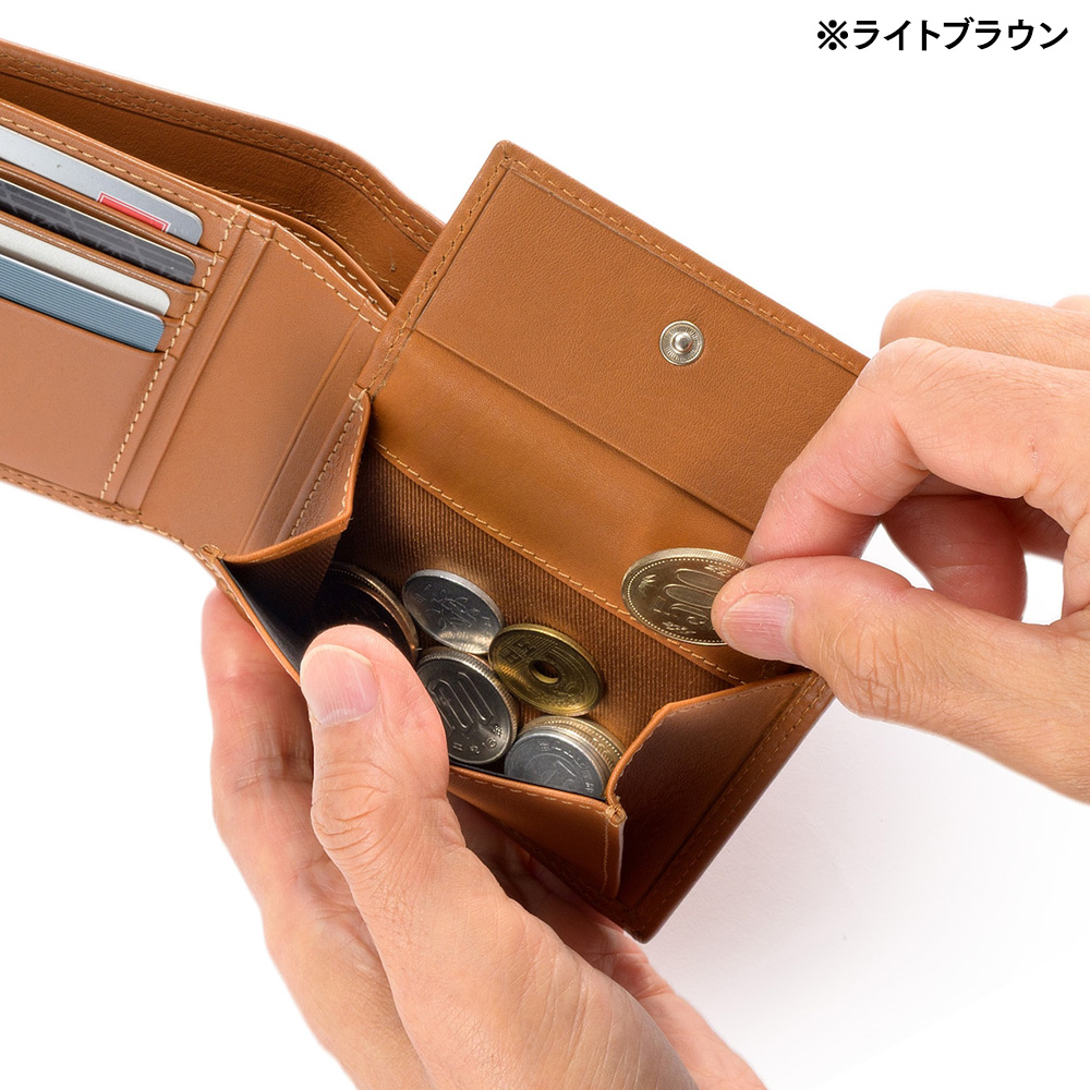 一番使いやすいとも言われ、贈り物にも選ばれやすい、小銭入れ付きのスタンダードな二つ折り財布です。