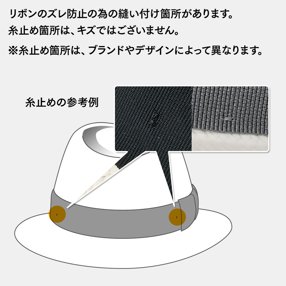 リボンのズレ防止のための縫い付け箇所があります。[詳細]