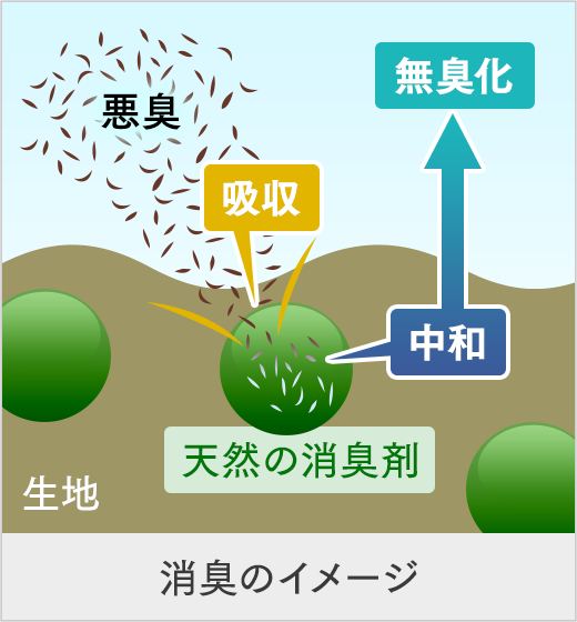 天然成分でできた消臭剤が、悪臭を吸着し中和し、無臭化するという画期的な技術です。