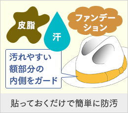 「帽子用汗止め消臭・制菌ライナー」は、帽子内側のスベリ部分に貼り付けるだけで、額部の汚れを防止するスグレモノ。