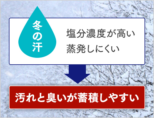 実は、冬の汗は夏より塩分濃度が高く、蒸発しにくいと言われています。帽子の額部に汚れと臭いが蓄積しやすくなっているのです。