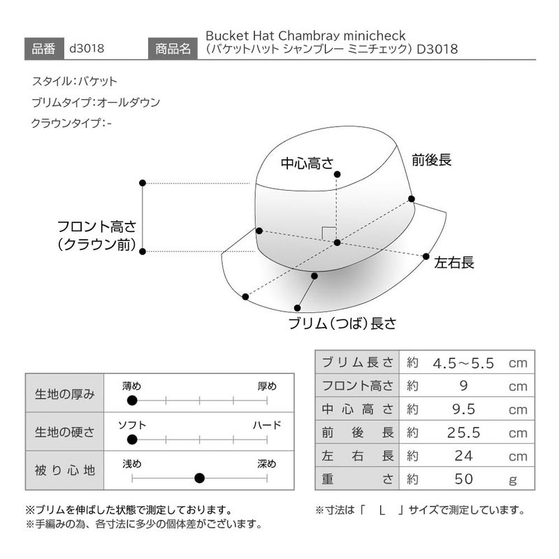Bucket Hat Chambray minicheck(バケットハット シャンブレー ミニチェック) D3018 ネイビー