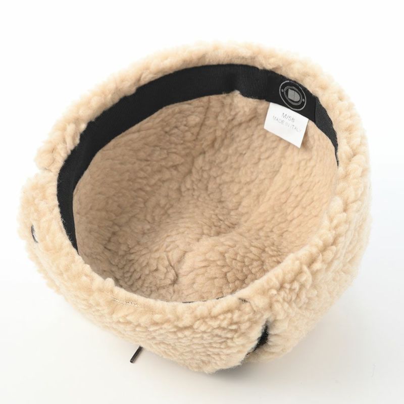 モコモコのボアは、耳あて部分のみならず、クラウンの内側にも。真冬の防寒にもいい、あたたかいフライトキャップ。