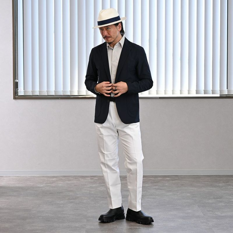 短めのブリムは、日本人の体型に合わせやすく、どなたにもハマるオールマイティ感のあるフォルム。「長めのツバはキザすぎる感じがして・・・」と抵抗感を抱いている方にも、気兼ねなく取り入れていただけるシルエットです。