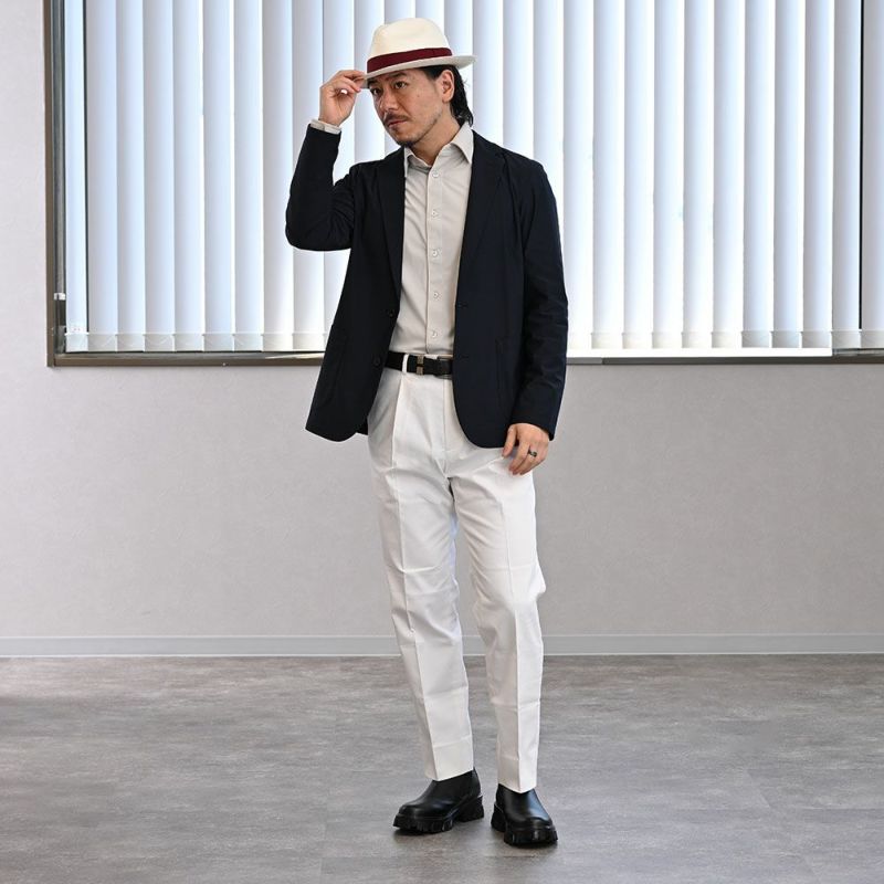 短めのブリムは、日本人の体型に合わせやすく、どなたにもハマるオールマイティ感のあるフォルム。「長めのツバはキザすぎる感じがして・・・」と抵抗感を抱いている方にも、気兼ねなく取り入れていただけるシルエットです。