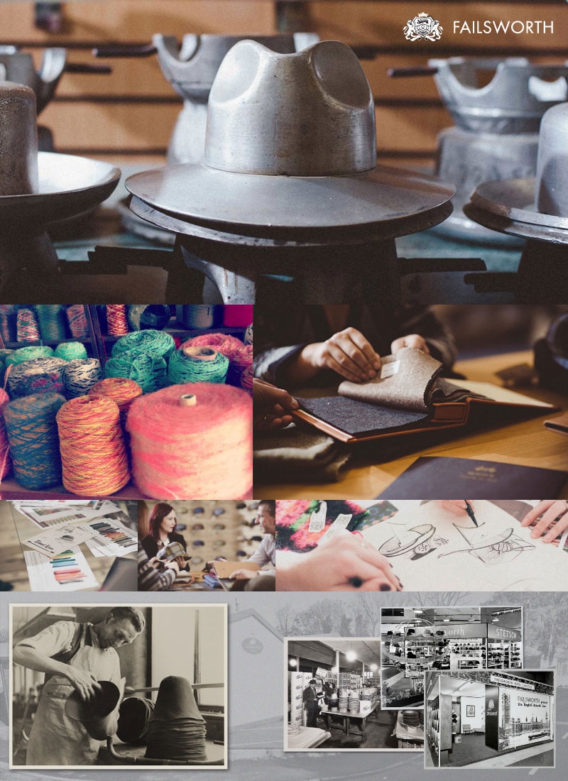 歴史に培われた高い技術が自在に生み出す、FAILSWORTHフェイルスワースの帽子作り。