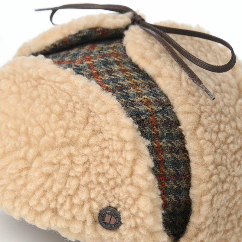 モコモコのボアは、耳あて部分のみならず、クラウンの内側にも。真冬の防寒にもいい、あたたかいフライトキャップ。