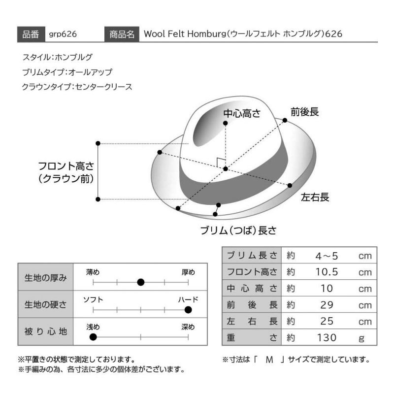 ガリュープラネット Wool Felt Homburg(ウールフェルト ホンブルグ)626 グレー 詳細