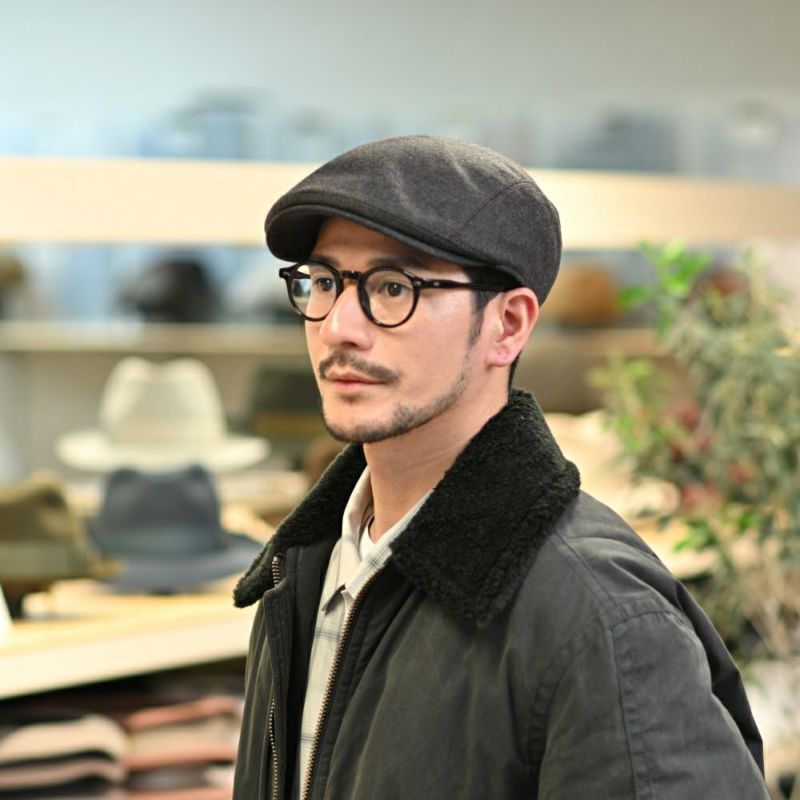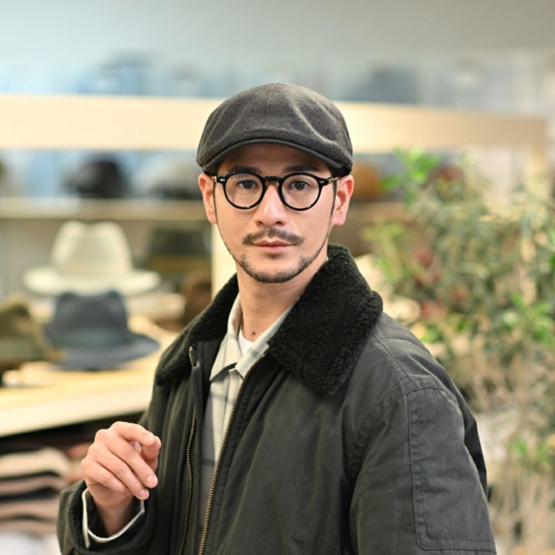 上品なツヤ感がある独自の色味の帽体は手ざわりなめらか。シャープな印象に決まる、人気のフォーパネルハンチング。