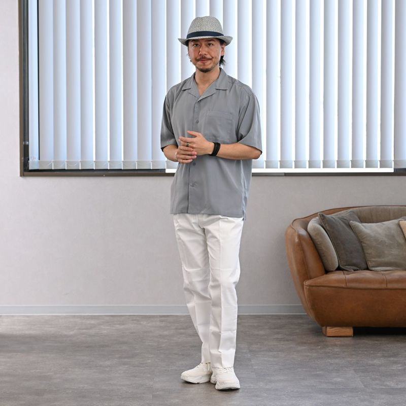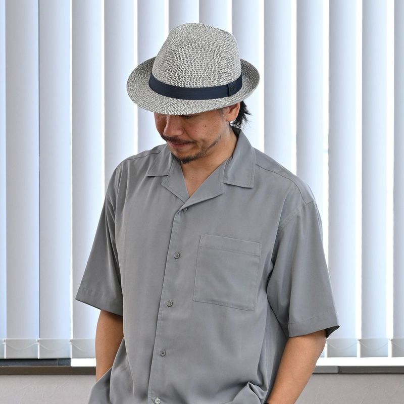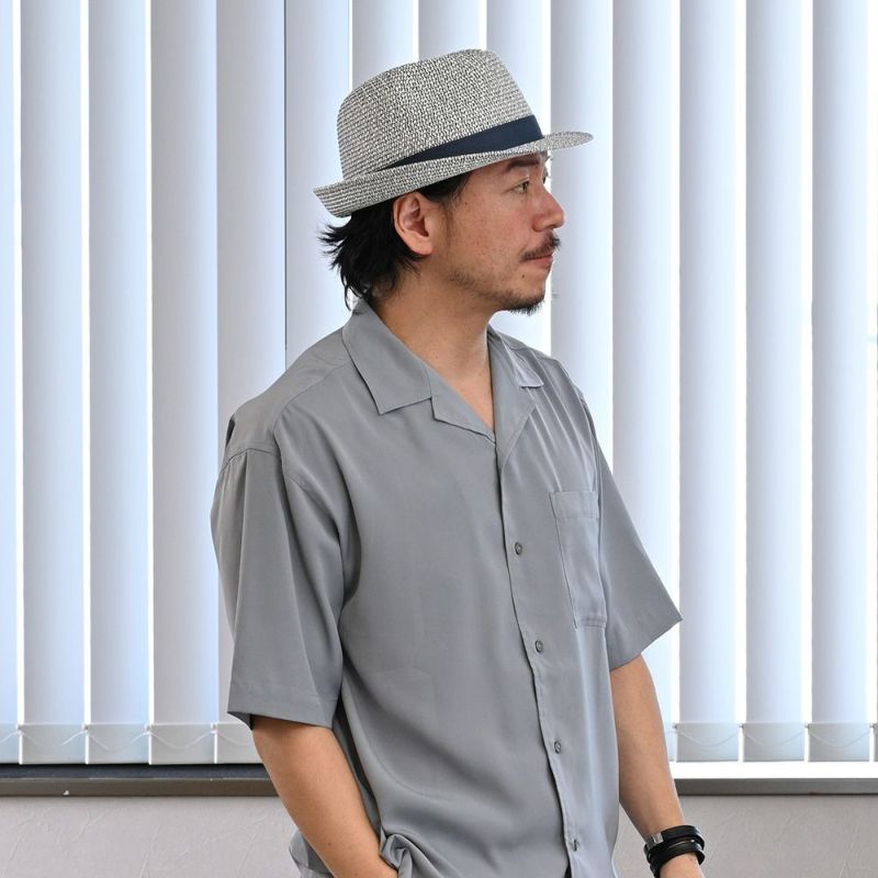 ホワイトとネイビーで仕立てたブレードを、ざっくりと編み上げたトリルビーハット。ややソフトな仕上げで、フィット感も良好。UVプロテクト仕様は、アウトドアに好適。
