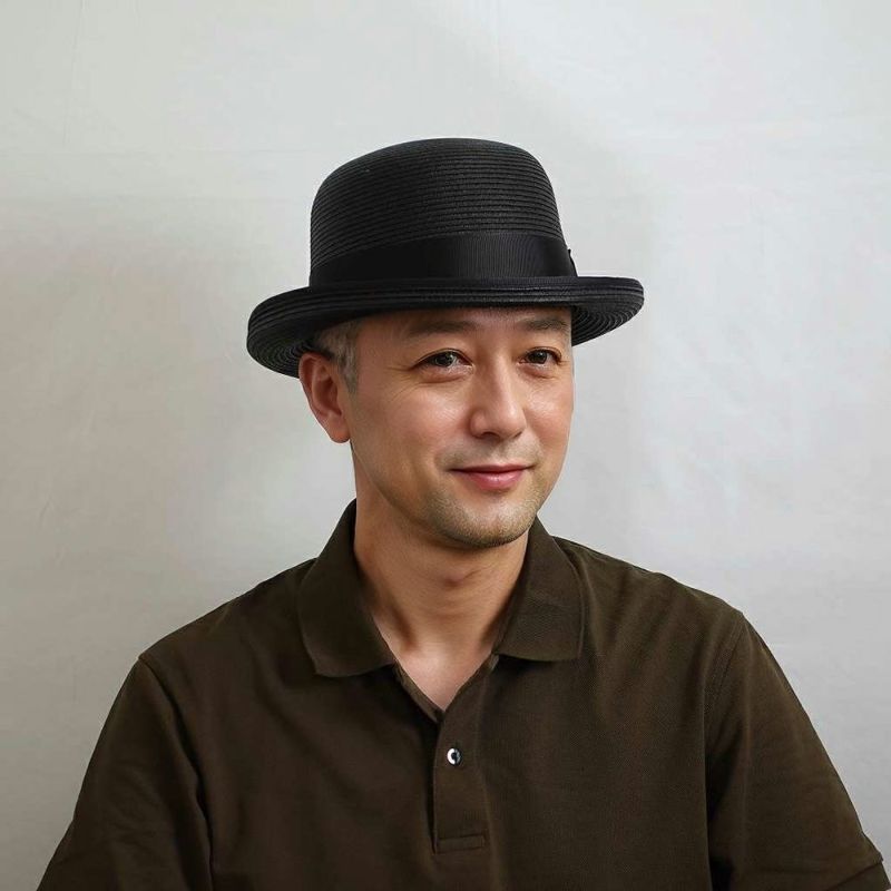 かっちりハードなクラウン、つば先パイピングのブリム。上品なボーラースタイルに仕上げたペーパーブレードハット。