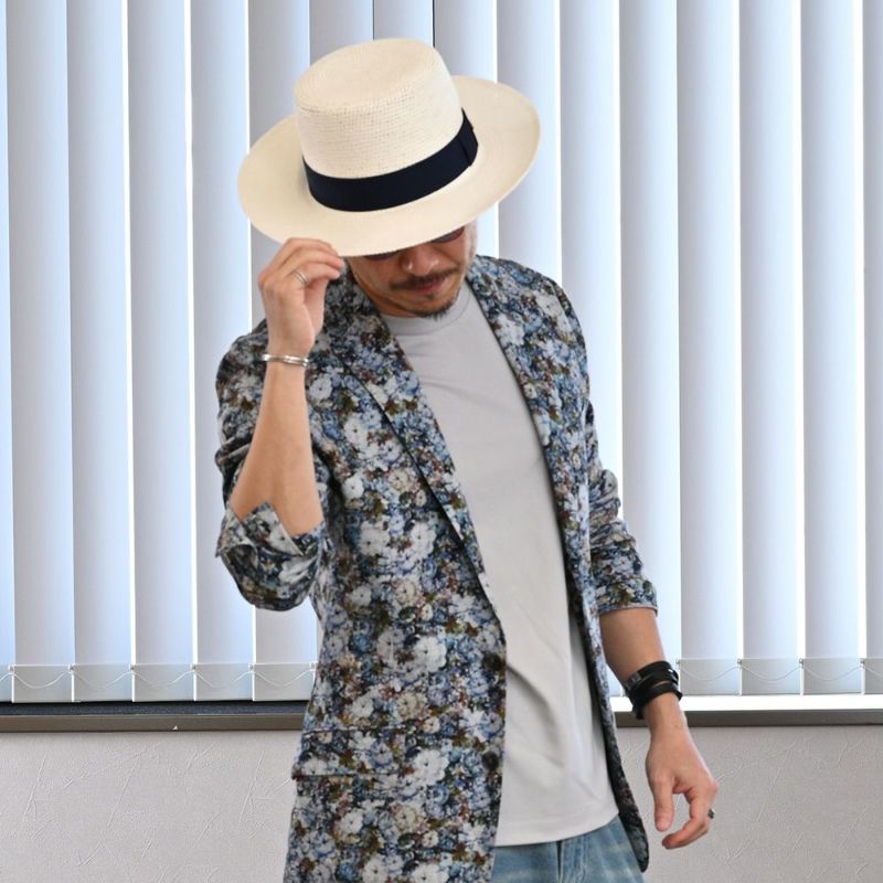 カラーバリエーションのうち、こちらの「ホワイト」は、ブリーチされたホワイトの帽体にネイビーのリボンを合わせたデザイン。白のパナマハットといっても堅苦しさはゼロ。カジュアルハットの感覚で、Tシャツやポロシャツなどラフな服装に合わせて楽しめます。
