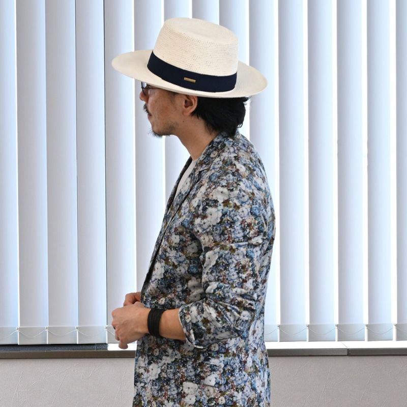 一般にカンカン帽やポークパイハットなど平天の帽子は、中心高さが低い場合が多いのですが、こちらの帽子は中心高さの数値は十分で、本パナマ特有のしなやかさもあるのでフィット感は悪くないと思います。中折れハットとは少し違った雰囲気を楽しみたいですね。