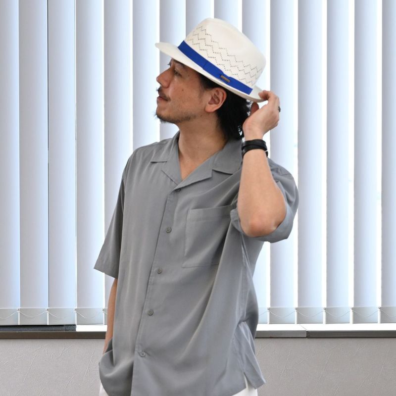 王道・定番のパナマ帽から、一歩先に進んだアイテムを手に入れたい方へ、おすすめしたいハットです。サイドクラウンの透かし編みのスリットデザインをより引き立たせるため、細幅のリボンを採用している点も、隠れたポイントといえます。どうぞ、お見逃しなく。
