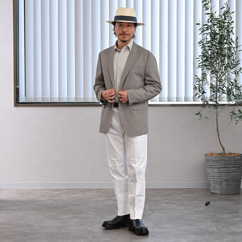 涼しさ重視の石目編みはひとつ格上の細やかな編み目に、リボンは高級ラインのパナマハットのシンボルとも言える段巻きに、と「ワンランク上」を意識して仕上げられた逸品アイテムです。シャープなクラウントップとフラットブリムが描くシルエットも美しいです。