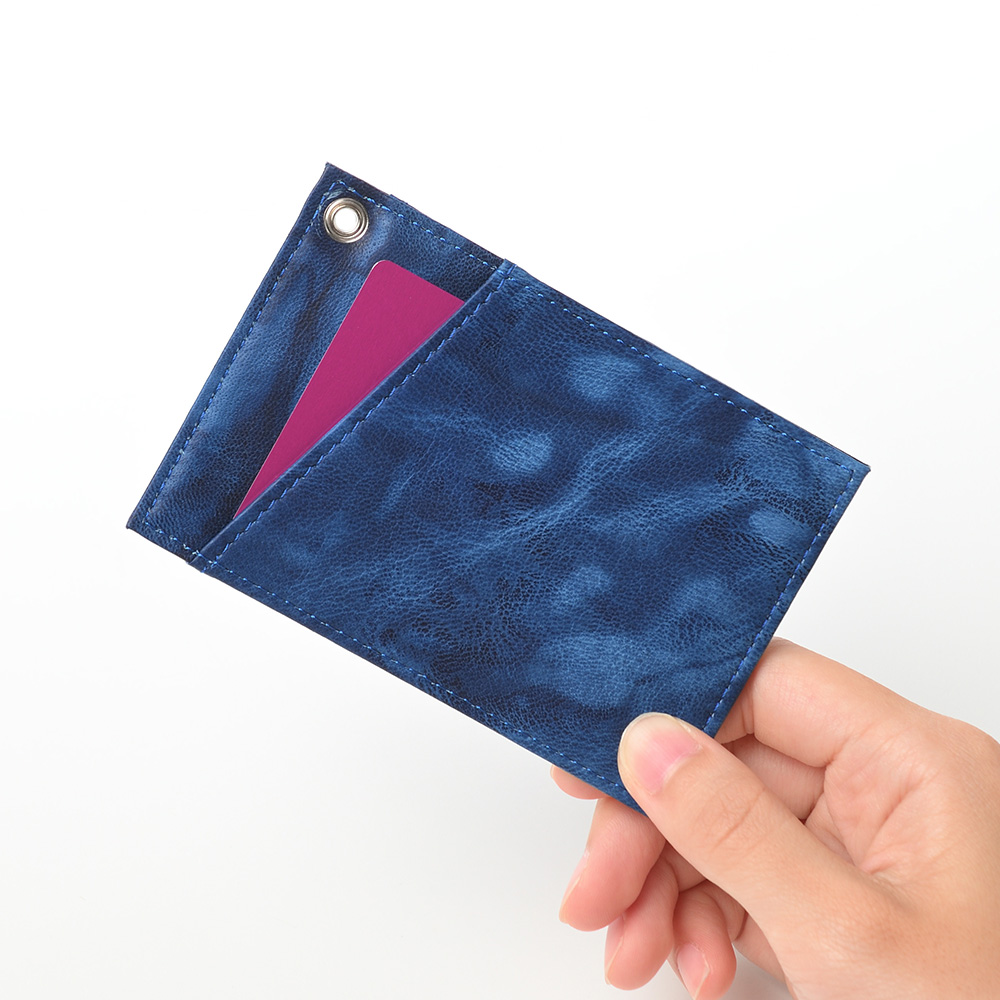 持ち歩きの負担にならない薄手の設計で、ICカード、社員証、学生証、クレジットカード等のカード類を、表裏のポケットに1枚ずつ収納できます。