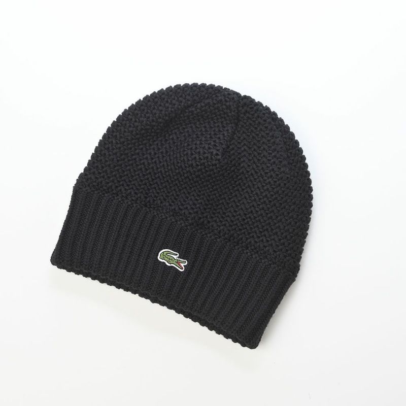 ラコステ ニット帽 RIB SWITCH KNIT WATCH(リブスイッチ ニットワッチ) L1386 ブラック|帽子通販 時谷堂百貨【公式】