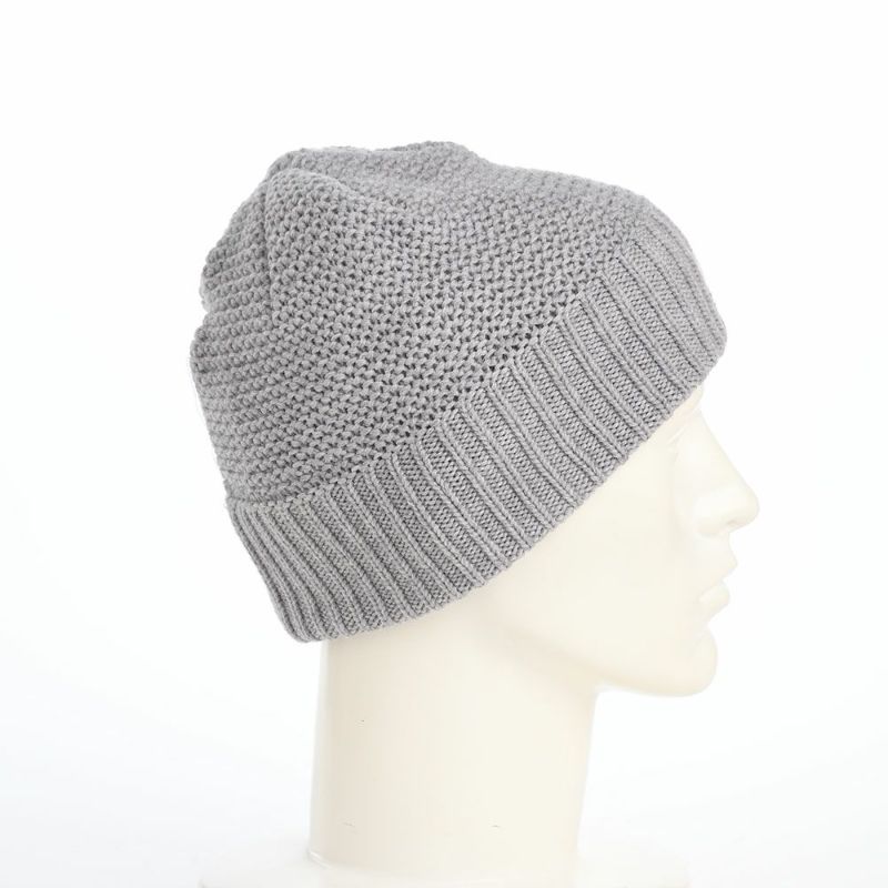 ひとつの帽子の中で編み方に変化をつけた切り替えデザインで、遊び心のあるニット帽。ウール素材で防寒もバッチリ。