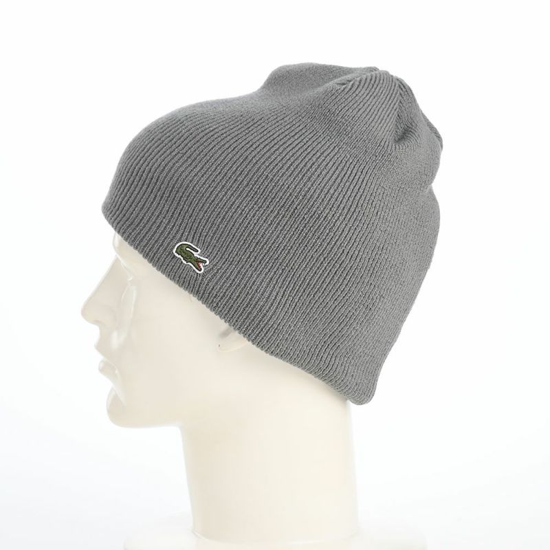 ラコステ ニット帽 WOOL KNIT BEANIE(ウール ニットビーニー) L1387 グレー|帽子通販 時谷堂百貨【公式】
