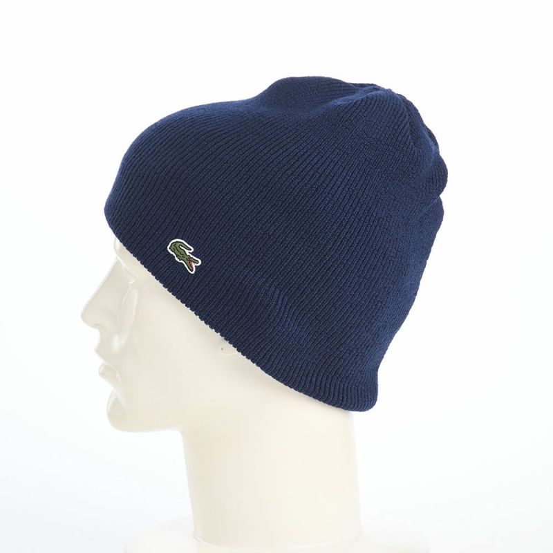 ラコステ ニット帽 WOOL KNIT BEANIE(ウール ニットビーニー) L1387 ネイビー|帽子通販 時谷堂百貨【公式】