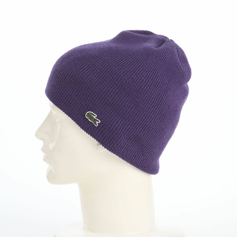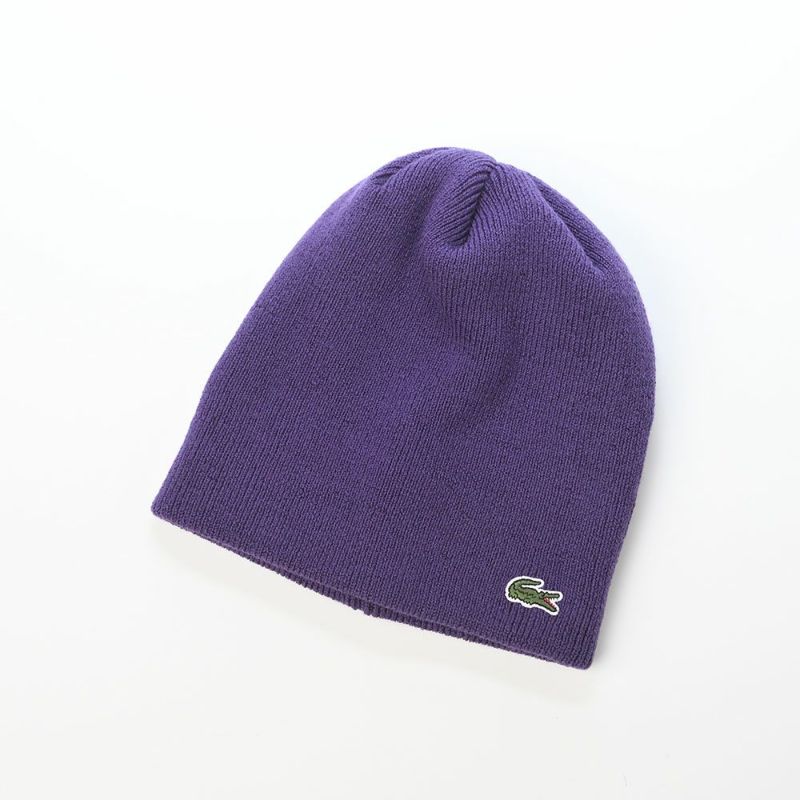 ラコステ ニット帽 WOOL KNIT BEANIE(ウール ニットビーニー) L1387 パープル|帽子通販 時谷堂百貨【公式】