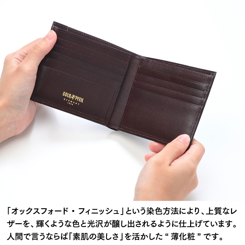 オックスフォードシリーズは、ドイツの老舗タンナーが鞣したジャーマンレザーを素材に用いた、GOLD PFEIL(ゴールドファイル)の顔といえる財布シリーズです。
