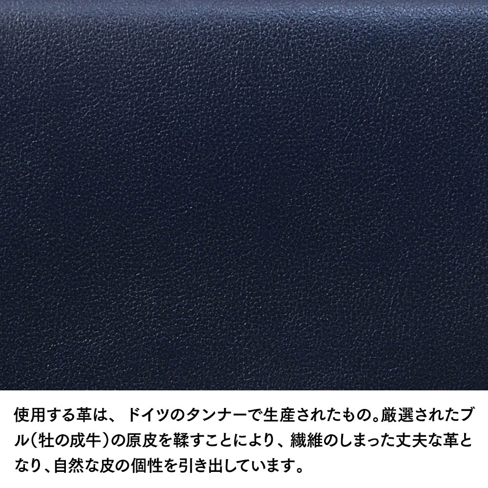使用する革は、ドイツのタンナーで生産されたもの。厳選されたブル(牡の成牛)の原皮を鞣すことにより、繊維のしまった丈夫な革となり、自然な皮の個性を引き出しています。