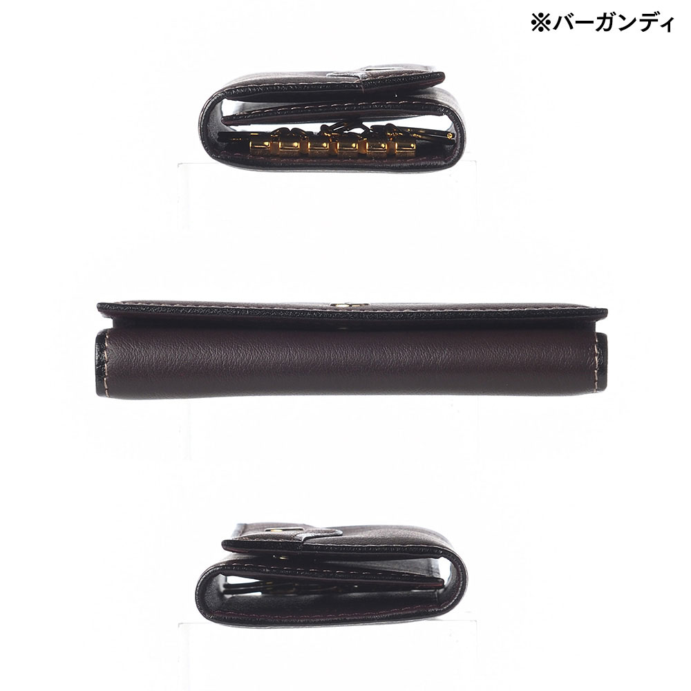メタルの装飾は、日本の最上級職人によるメッキと磨きが施された、信頼と品質の象徴です。すっきりコンパクトなデザインながら、使い勝手のいいキーケースになっています。