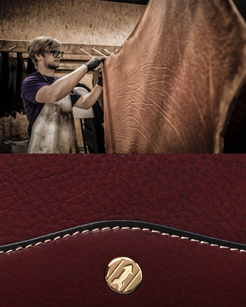 使用する革は、ドイツのタンナーで生産されたもの。厳選されたブル(牡の成牛)の原皮を鞣すことにより、繊維のしまった丈夫な革となり、自然な皮の個性を引き出しています。