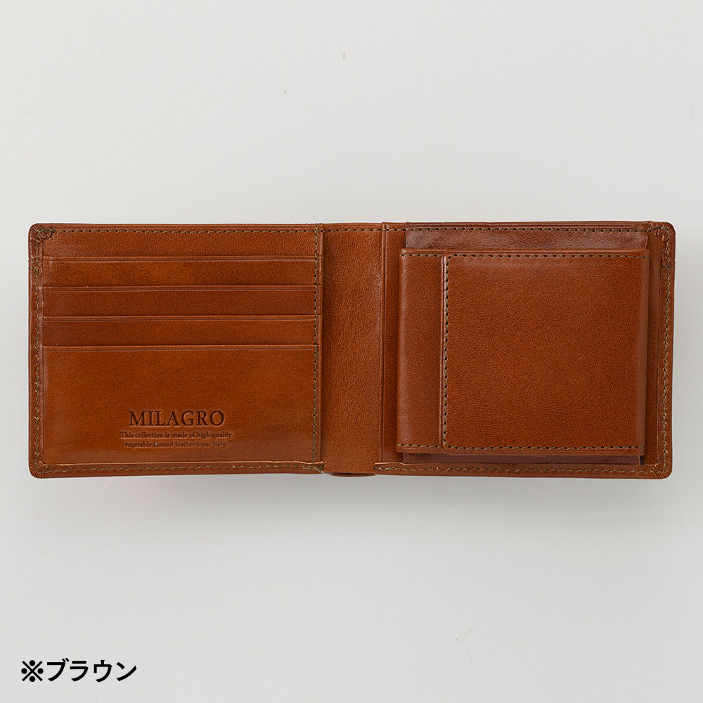ミラグロ 二つ折り財布 21ポケット タンポナートレザー ウォレット CA-S-2108 ブラウン|帽子通販 時谷堂百貨【公式】