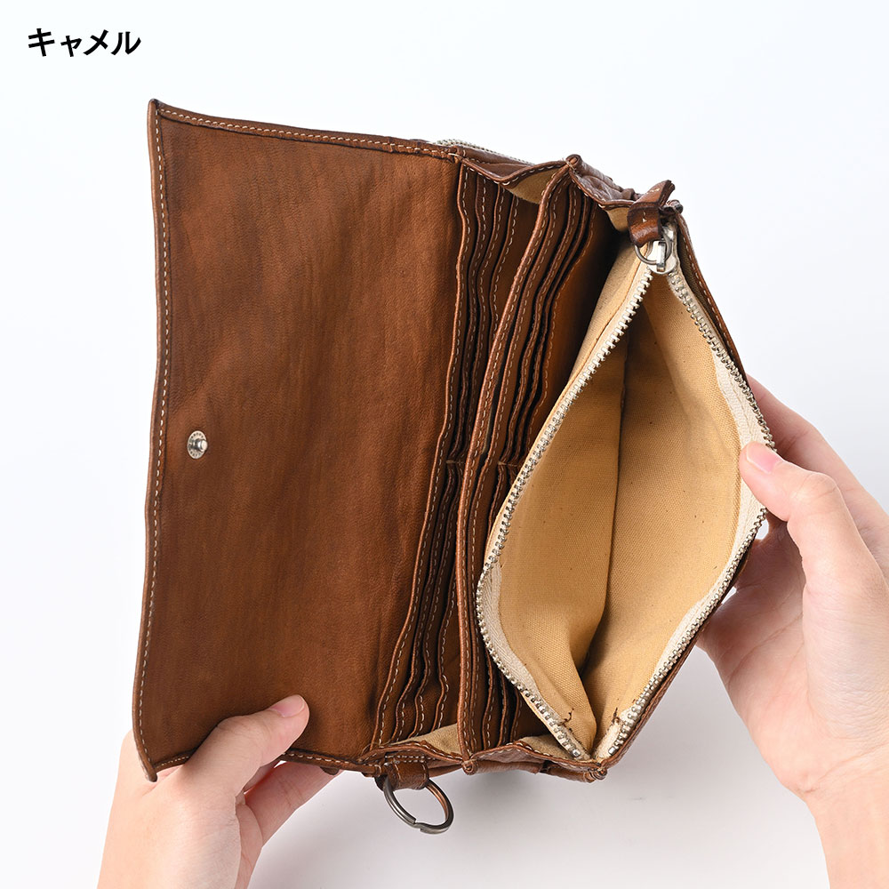 厳選された馬革を素材に、製品洗い加工でビンテージな風合いに仕上げた、長財布