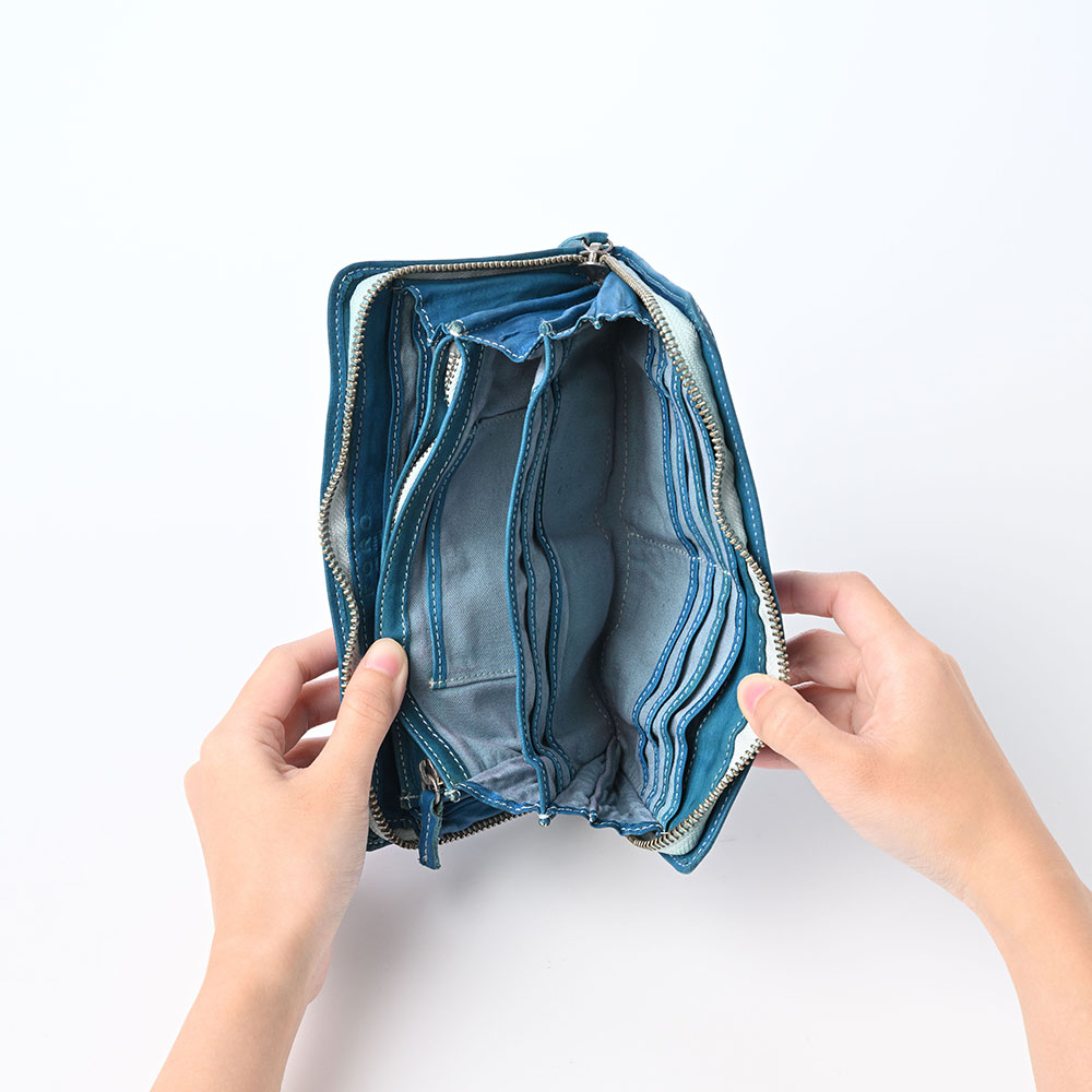 リアルマインド 長財布 FORO(フォロ) 馬革 製品染め ラウンドファスナー長財布 ブルー|帽子通販 時谷堂百貨【公式】