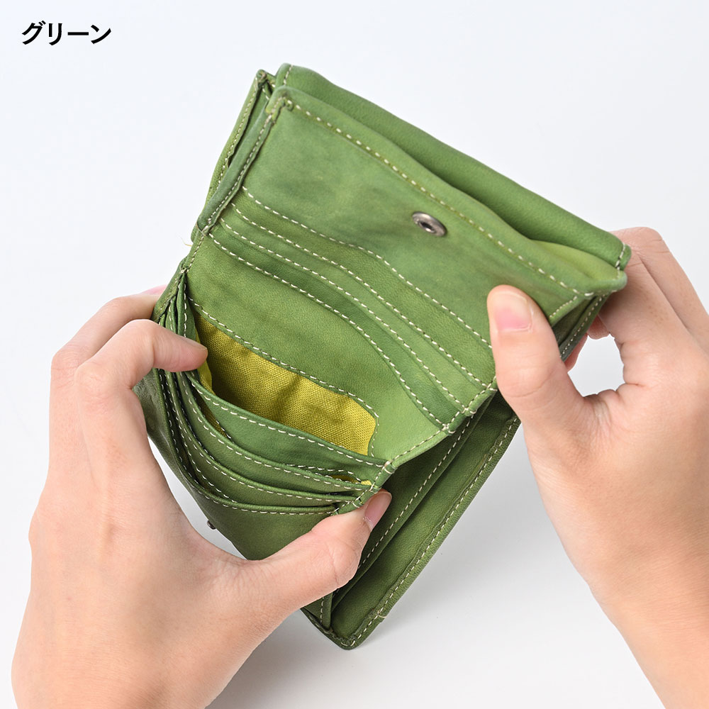 リアルマインド 二つ折り財布 FORO(フォロ) 馬革 製品染め ボックス型小銭入れ付き折財布 グリーン|帽子通販 時谷堂百貨【公式】