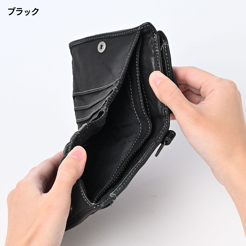 ■上質な馬革をビンテージな風合いに仕上げた、ボックス型小銭入れ付き二つボックス型小銭入れ付き折財布