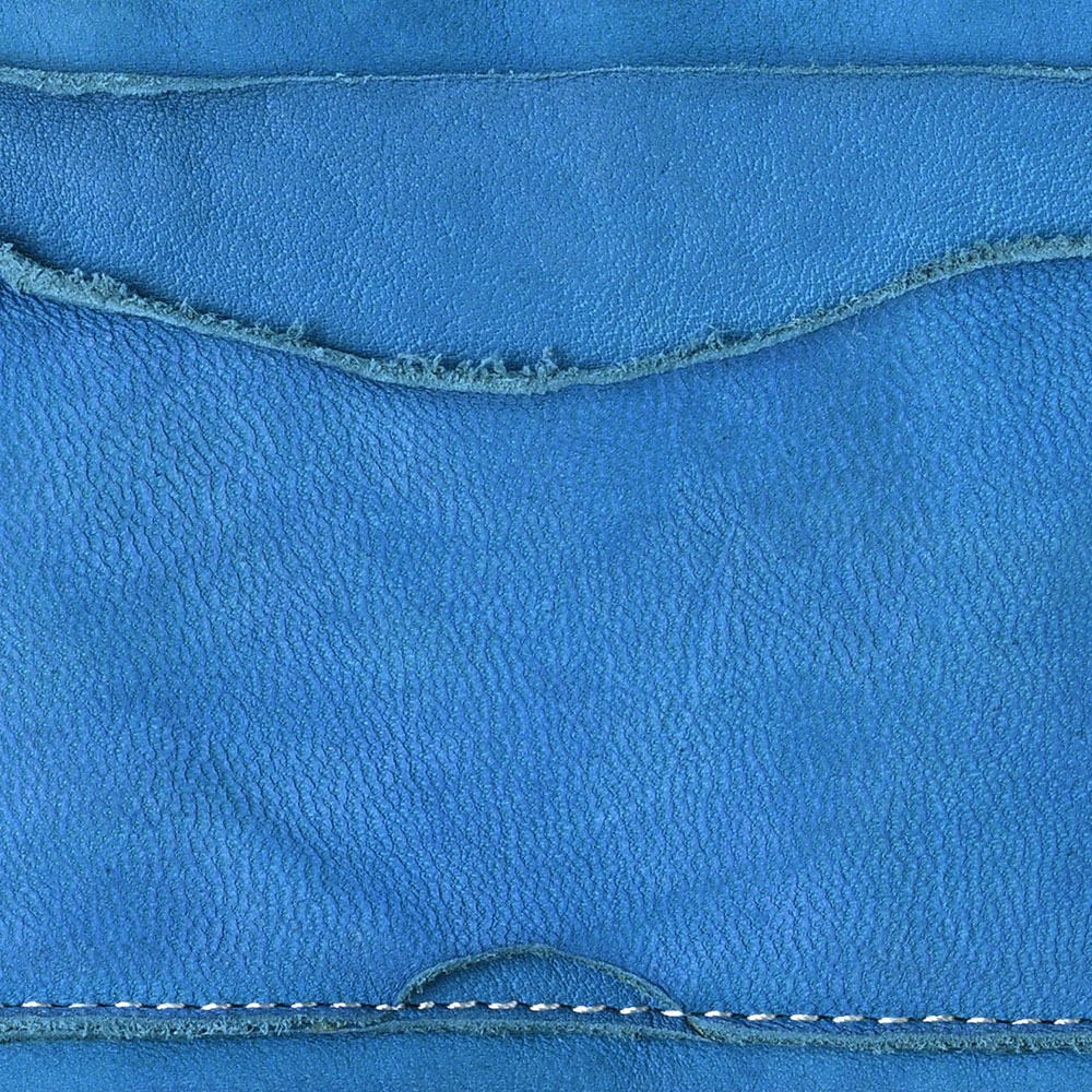馬のヌメ革を使用し、縫製後に染色を行う製品染め(製品洗い)加工と、ユーズド加工を組み合わせることで、一般的な革財布とは異なる独特の表情を持たせています。革の縮みや染まり方が均一になりすぎず、程よく使い込まれたような雰囲気になっています。