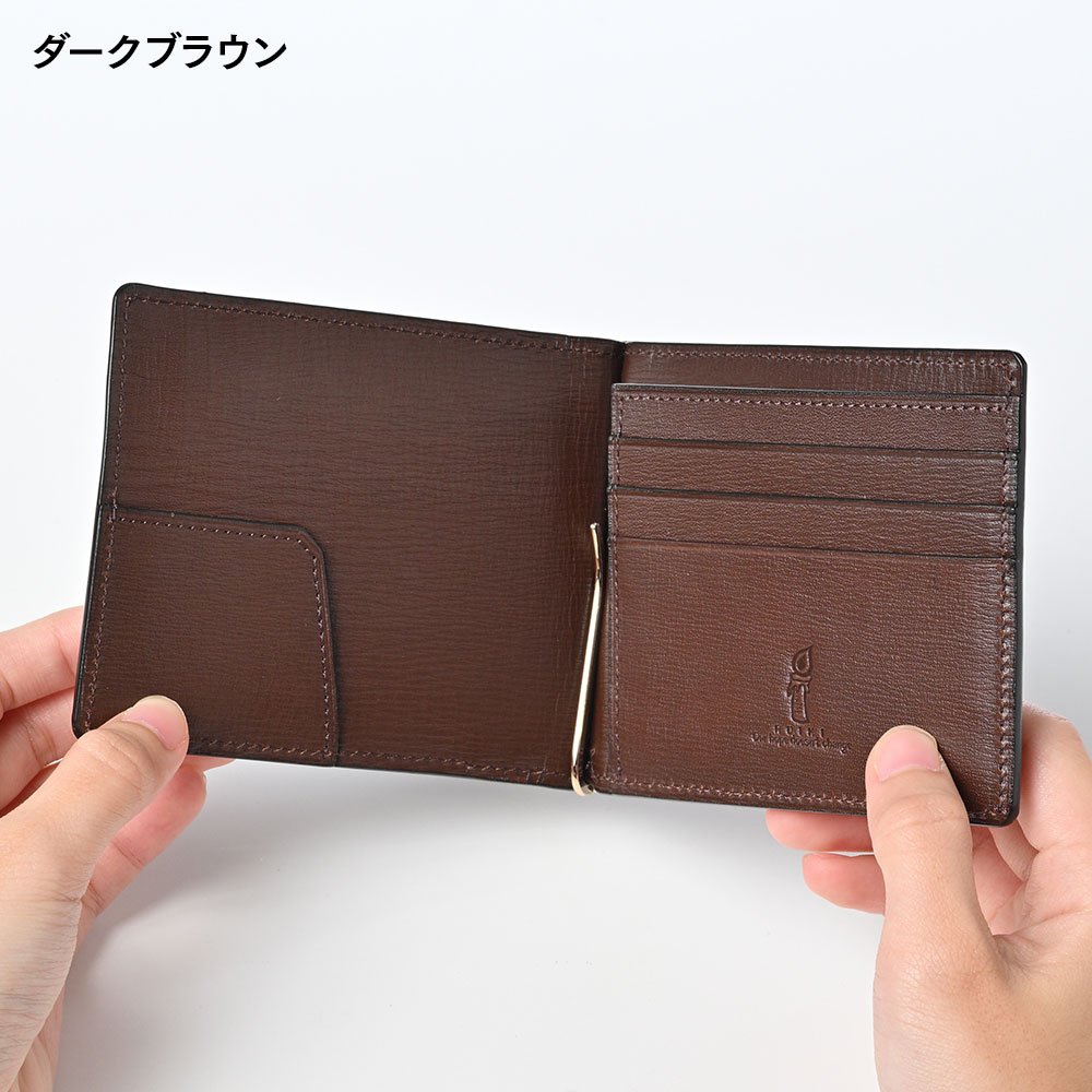 ルイキ 小銭入れ付き マネークリップ ダークブラウン 詳細