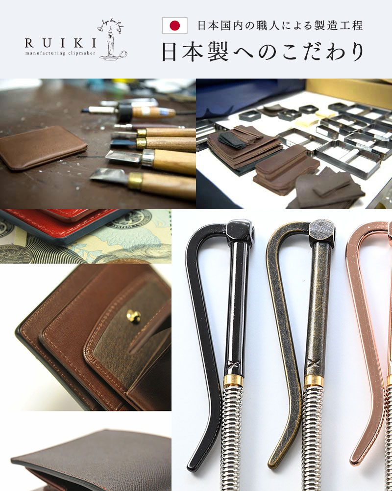 RUIKIは、日本の老舗金具メーカーである株式会社千代田工業社を母体に誕生したマネークリップ・財布ブランドです。