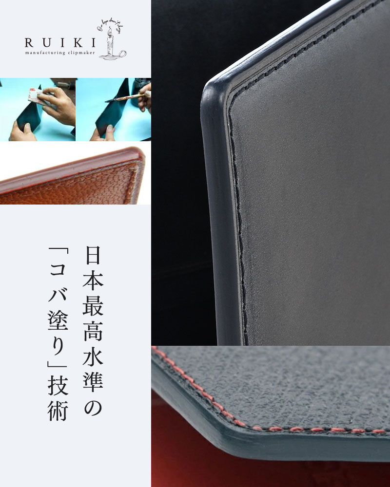 RUIKI(ルイキ)のコバ塗りは、通常より手間のかかる工程を採用することで、「割れにくく」「断面が美しく」「手触りの良い、立体的なコバ」を完成させています。