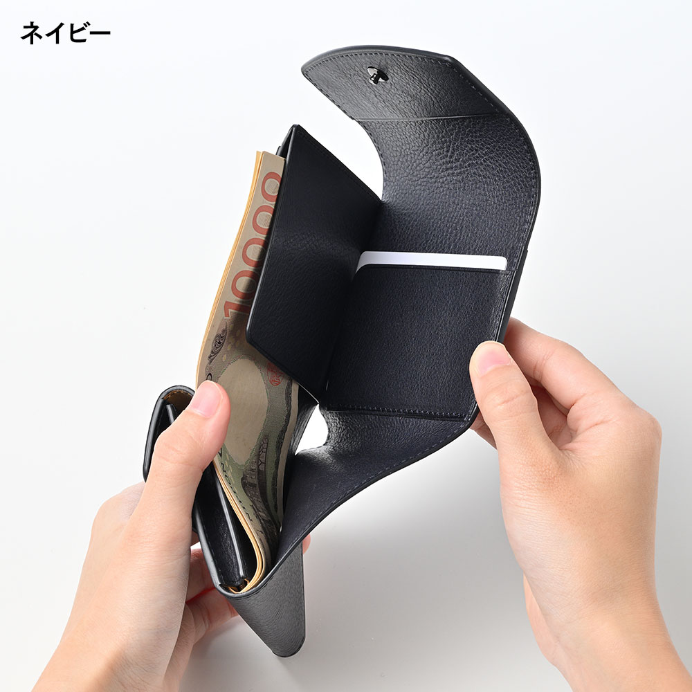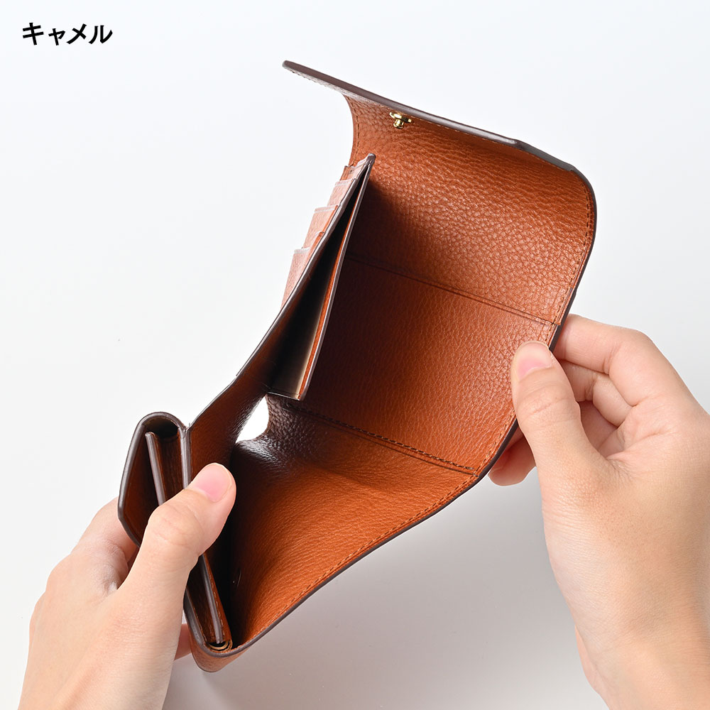 ●イタリア産バケッタレザーを使用した、高級感あふれる三つ折り財布