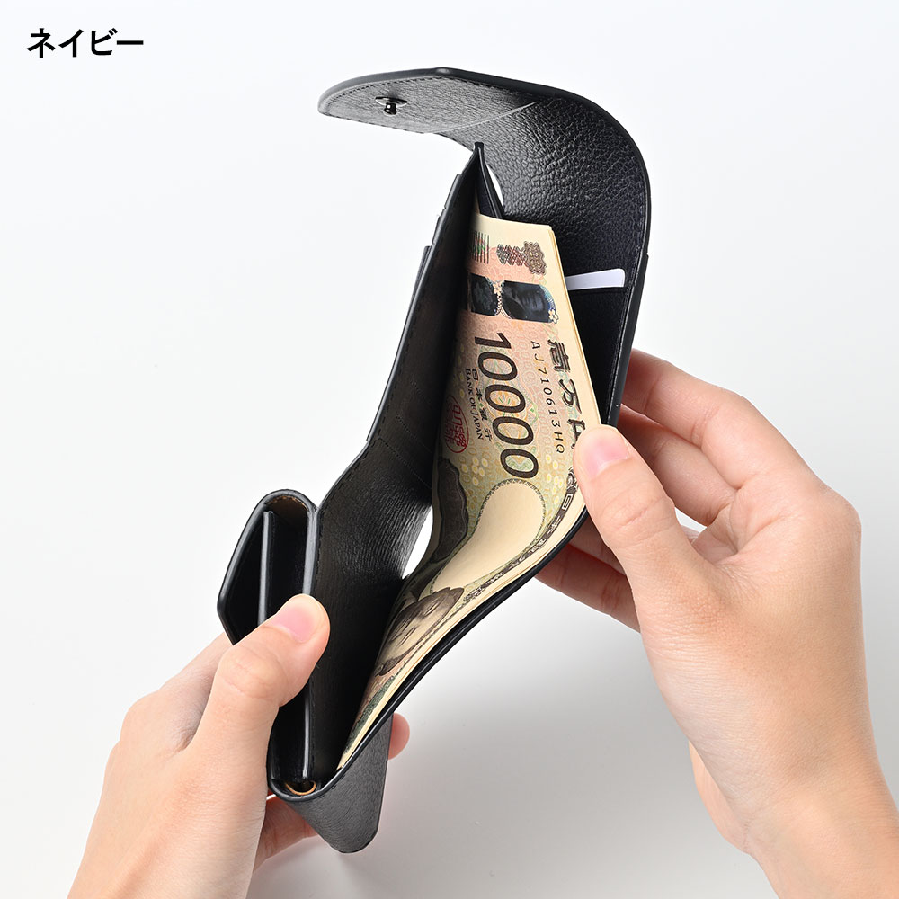 柔らかく開きやすい仕様で、コンパクトながら十分な収納力があります。札入れの内側にもカードポケットを備えています。外側のポケットは交通系ICカードを入れるのにもおすすめです。