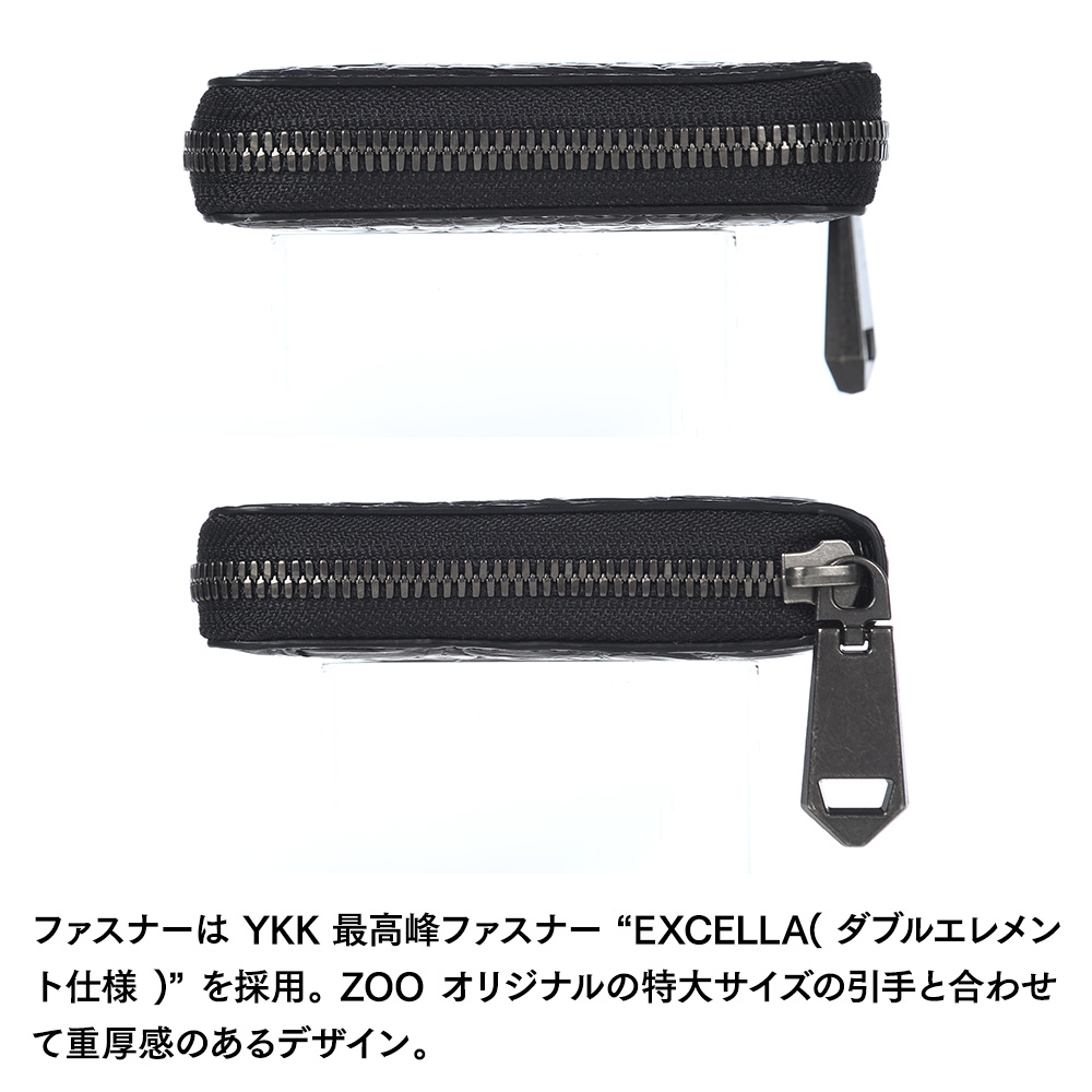 ファスナーは、YKK 最高峰ファスナーEXCELLA(ダブルエレメント仕様)を採用。ZOO(ズー)オリジナルの特大サイズの引手と合わせて重厚感のあるデザインです。