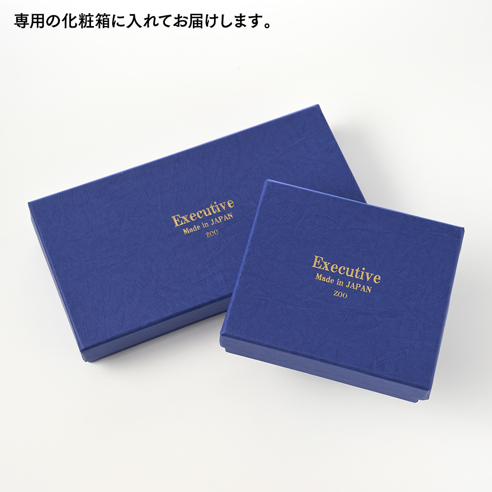ワニは一度つかんだ獲物を離さないことから、ワニ革は「お金やチャンスを引き寄せる」象徴とされています。そのため、金運や成功運のアップなどを願う方にも縁起のよいレザーとなっています。化粧箱に入っているので、大切な方への贈り物にもおすすめです。