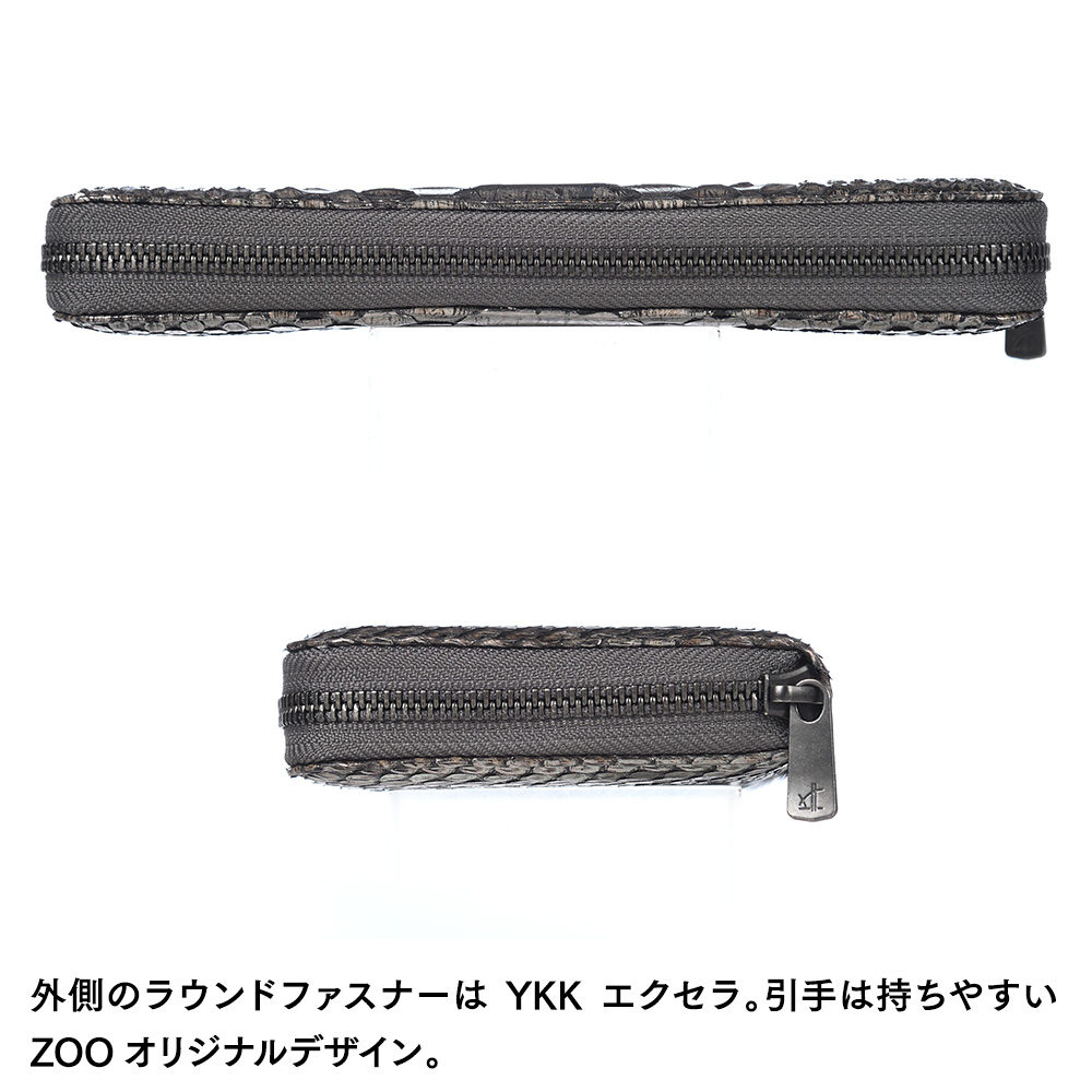 ファスナーは、YKK 最高峰ファスナーEXCELLA(エクセラ)を採用。引手は持ちやすいZOO(ズー)オリジナルデザインです。