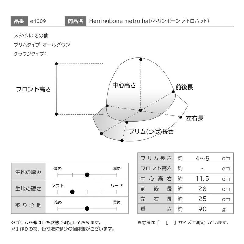 襟立製帽所 Herringbone metro hat(ヘリンボーン メトロハット) グレー 詳細