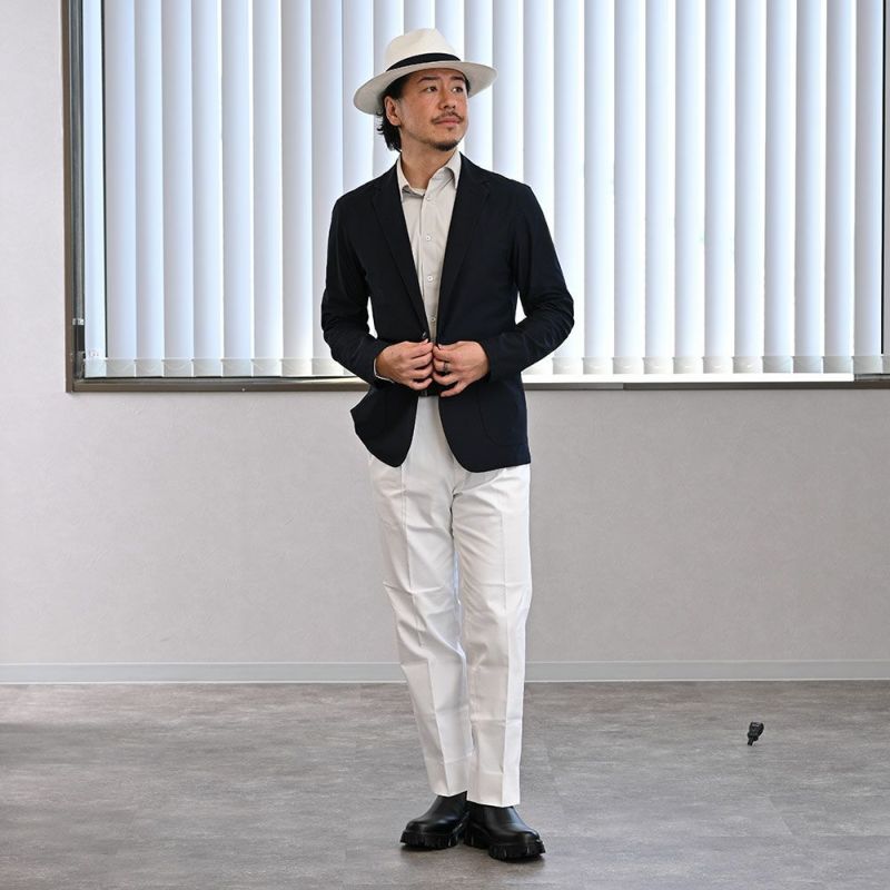 この夏、ワンランク上のホワイトパナマをお探しなら、こちらの一品を。Homero Ortega(オメロ オルテガ)のJAPAN BRISA(ジャパン ブリサ)ホワイトは、美しくブリーチされた石目編みの帽体にダークネイビーの段巻きリボンを合わせた、軽快かつ上品なパナマハットです。