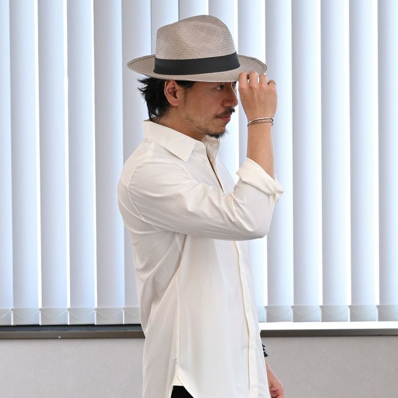 ほのかに紫がかったようなグレーの帽体は他にないオンリーワンの輝きで、濃いグレーのリボンとも絶妙のバランス。Homero Ortega(オメロ オルテガ)のLILA GRIS(リラグリス)は、きっちり仕立てられた網代編みが際立つ、注目のパナマハットです。